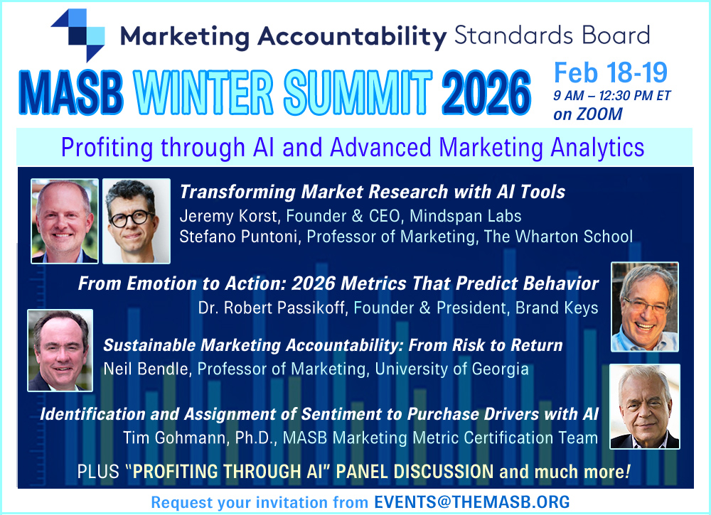 This invitation-only event is an important gathering for experts driving the marketing accountability movement. Top finance, analytics and marketing professionals join with leading academics to network, get briefed on recent advances, and participate in shaping the future of accountable marketing.